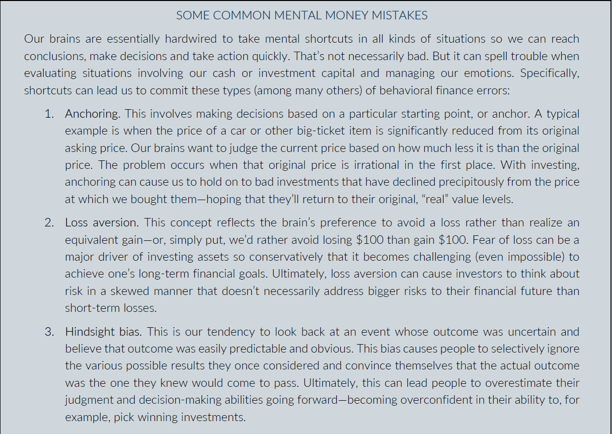 Behavioral finance—the study of people’s biases about money and investing, and how those biases impact decision making—has become a hot topic. A pioneer in the field even was awarded the Nobel Memorial Prize in Economic Sciences for his work a few years ago.